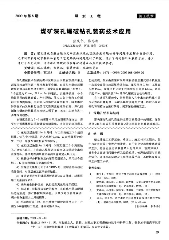 煤礦深孔爆破鉆孔裝藥技術(shù)應(yīng)用
